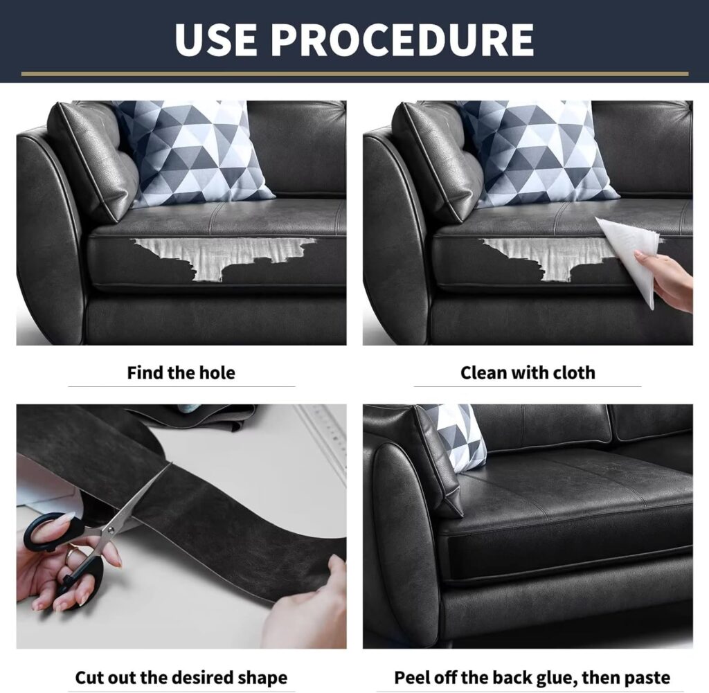 Leather repair patch comes with glue and easy to use. You only need to clean the repair area to keep it dry, cut it out to a suitable size, peel off the backing paper, and stick it to the damaged area to make its surface look new!
